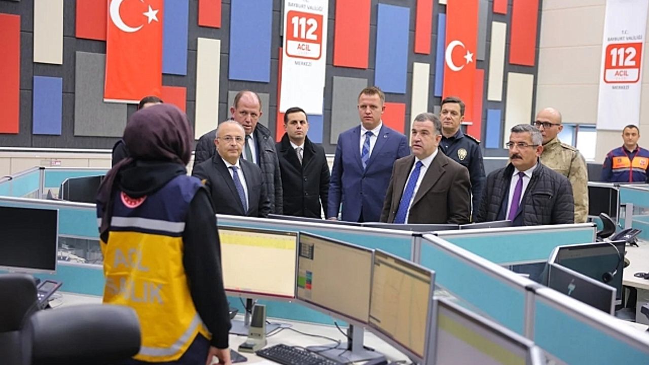 Bayburt Valisi Mustafa Eldivan, 112 Acil Çağrı Merkezi Müdürlüğü Komuta Merkezi''ni ziyaret ederek incelemede bulundu.