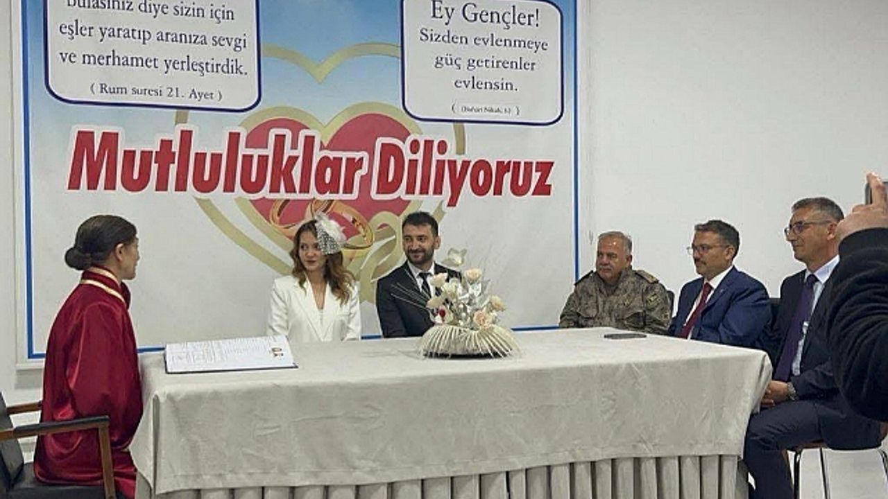 Aleyna ve Yunus çiftinin nikâh törenine katılan Vali Ercan Turan, İl Emniyet Müdürü Niyazi Turgay ve İl Jandarma Komutanı Albay Nihat Özkök ile birlikte nikâh şahitliği yaptı. Çiftin mutluluğuna ortak olan protokol üyeleri, genç çifti tebrik ederek bir ömür boyu mutluluk diledi.