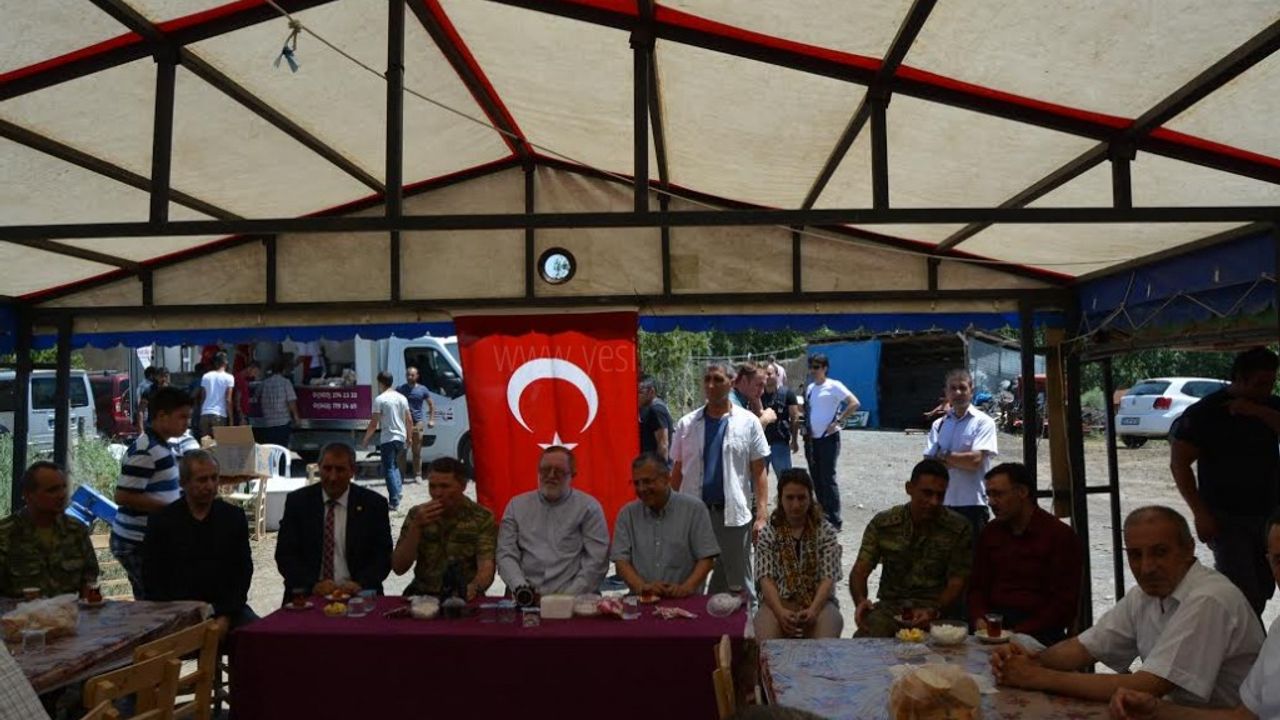 Kara Kuvvetleri Komutanı Orgeneral Salih Zeki Çolak''ın koruması Topçu Astsubay Kıdemli Başçavuş Bülent Aydın için kurulan taziye çadırında şehidin ağabeyisi Abbas ve Selçuk Aydın"a başsağlığı dilediler.