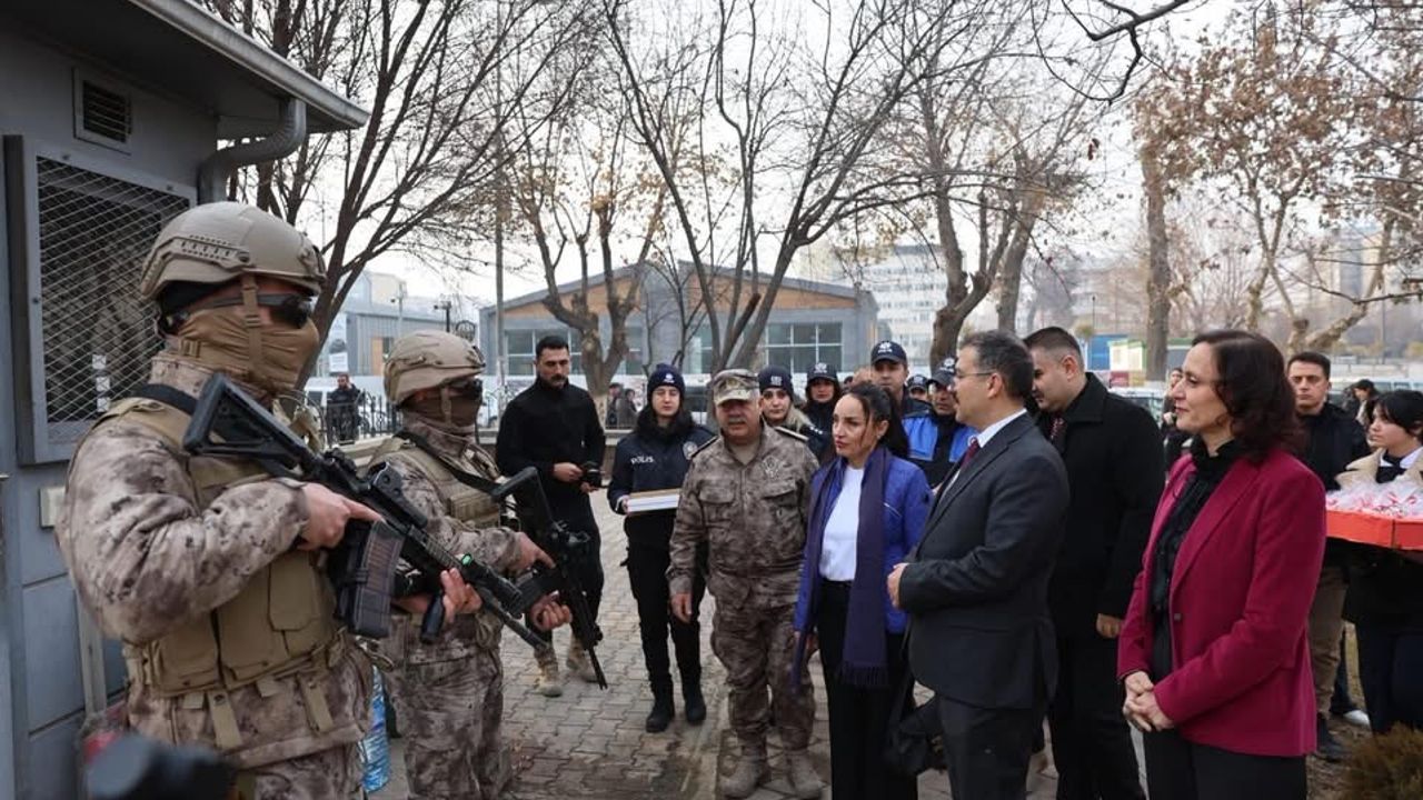 Kandil programı kapsamında ilk olarak görev başındaki güvenlik güçlerini ziyaret eden Vali Turan ve eşi, vatandaşların huzur ve güvenliği için gece gündüz fedakârca görev yapan emniyet ve jandarma personelinin Regaip Kandili’ni tebrik ederek çalışmalarında kolaylıklar diledi.