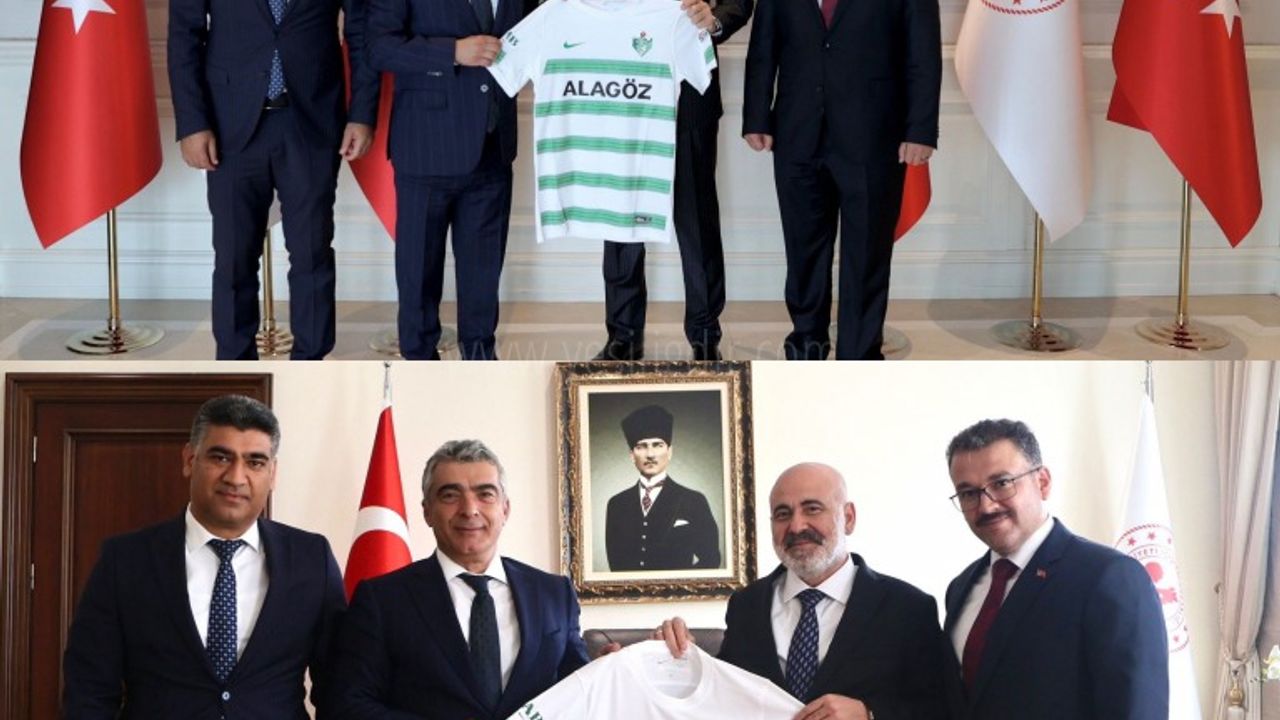 Iğdır heyeti Bakan Yerlikaya"nın ziyaretinin ardından Bakan Yardımcısı fahri Iğdırlı Mehmet Sağlam"ı da ziyaret ederek forma hediye ettiler. Haber: Zeki Şıktaş