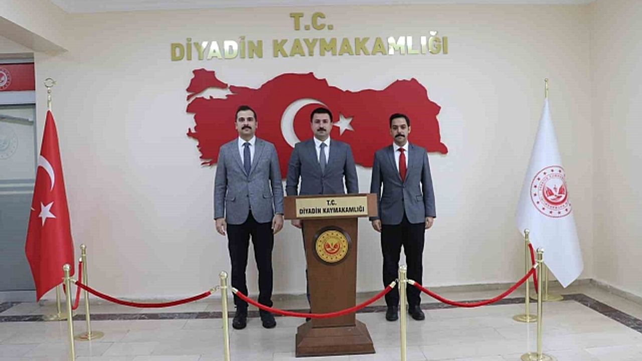 Bitlis Vali Yardımcısı Onur Aykaç ve Güroymak Kaymakamı Mehmet Zahid Uzun, Diyadin Kaymakam Mustafa Karali''yi makamında ziyaret etti.