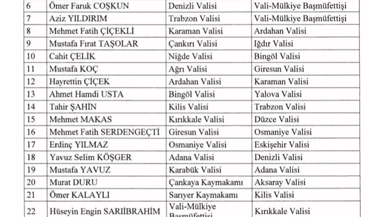 Aylardır çıkması beklenen Valiler Kararnamesi az önce yayımlandı. Kararname ile Iğdır Valisi Ercan Turan Mülkiye Başmüfettişliğine atanırken, yerine Çankırı Valisi Mustafa Fırat Taşolar getirildi.