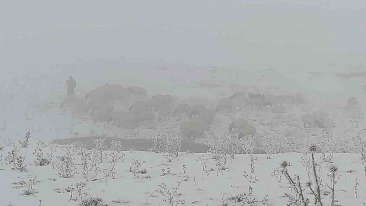 Yurdun büyük bir bölümünü etkisi altında alan kar yağışı, hayatı olumsuz yönde etkilemeye başladı. Van''da da etkili olan soğuk hava hayvancılıkla uğraşan vatandaşları zorluyor. Kar kalınlığının 30 santimetreye ulaştığı bölgelerde çobanların zorlu kış mesaisi de başladı. Normalde kış günlerini ahırlarında geçiren küçükbaş hayvanlar, gebe oldukları için olumsuz hava şartlarına rağmen günde belirli saatlerde yürütülüyor. Bu nedenle mahalleli, hem koyunlarını yürütüyor hem de yemden tasarruf etmek için koyunlarını kar üzerinde otlatıyorlar. Soğuk ve karlı havada otlayan koyunlar ilginç görüntü oluşturdu.