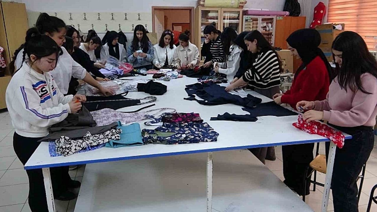 Van''da Vestel Kız Mesleki ve Teknik Anadolu Lisesi Moda Tasarım Bölümü öğrencileri, ihtiyaç sahipleri için elbiseye dikiyor.