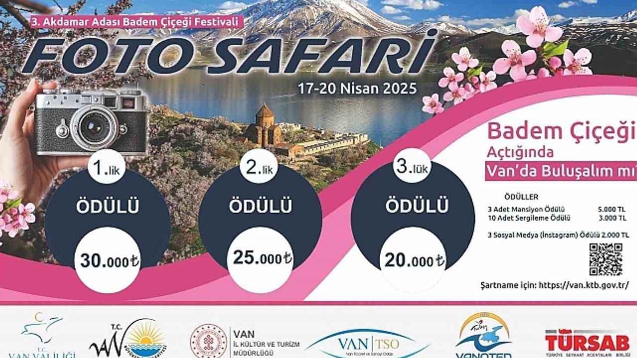 Van Valiliği himayelerinde, Van İl Kültür ve Turizm Müdürlüğü tarafından Van Ticaret ve Sanayi Odası, (Van TSO), Van Otelciler ve Turizmciler Derneği (VANOTED), ve TURSAB Doğu Anadolu Bölge Temsil Kurulu iş birliğiyle, "3. Akdamar Adası Badem Çiçeği Festivali" kapsamında düzenlenecek olan "Akdamar Adası Badem Çiçeği Foto Safari'' doğa ve fotoğraf tutkunlarını Akdamar''ın eşsiz güzelliklerinde buluşturuyor. Van Gölü''nün incisi Akdamar Adası, Nisan ayının ortalarında açmaya başlayan badem çiçekleriyle adeta görsel bir şölen sunuyor. Binlerce yıllık geçmişe sahip tarihi Akdamar Kilisesi ile birlikte çiçeklerin zarafeti hem profesyonel hem amatör fotoğrafçılar için eşsiz kareler vadediyor. Yarışma çerçevesinde fotoğraf severler, çektikleri en iyi karelerle yarışmaya katılarak hem Van''ın tanıtımına katkı sağlayacak hem de ödüller kazanma şansı yakalayacak. Seçici kurulun değerlendirmesi sonucu dereceye giren eserler, Van''ın tanıtımı amacıyla yazılı ve görsel medya ile sosyal medya mecralarda yayımlanarak geniş kitlelere ulaşacak. Yarışmada ilk üçe giren fotoğraflar, mansiyon ve sergilime ödülü alan fotoğraflar ile sosyal medya yarışmasında dereceye giren ilk üç eser sahiplerine ödüller verilecek.