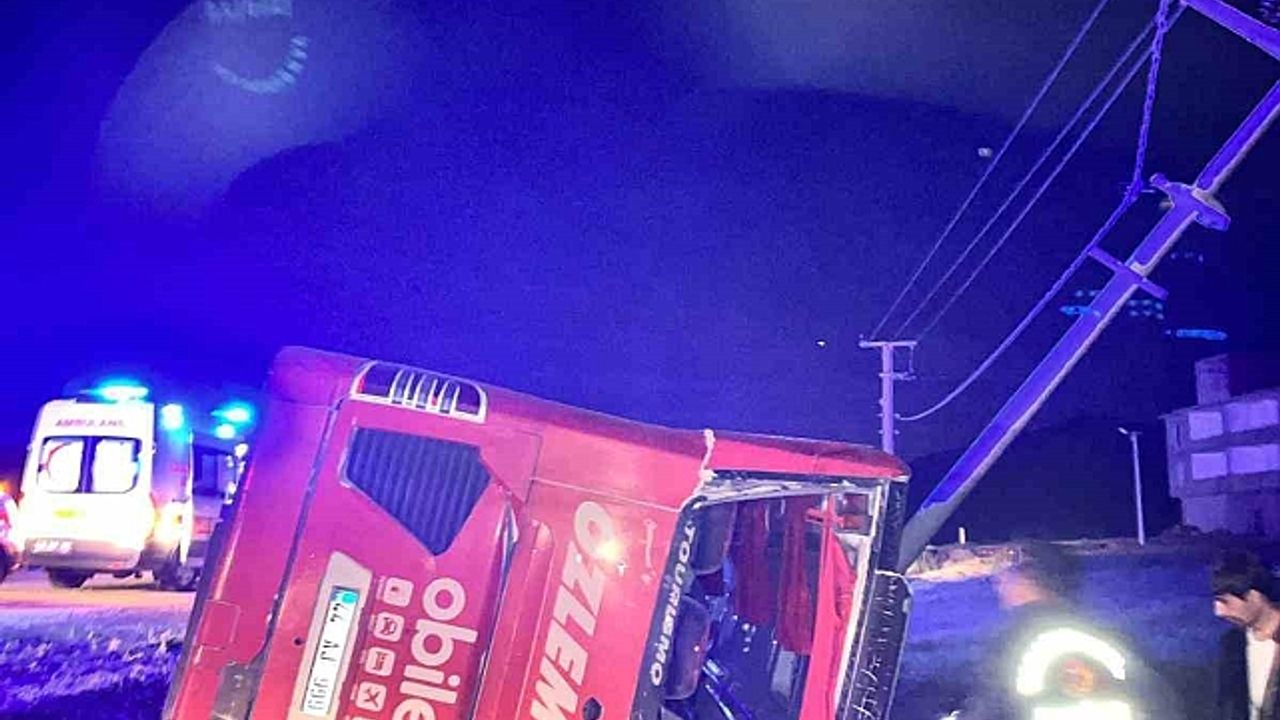 Van''ın Gevaş ilçesinde yolcu otobüsünün devrilmesi sonucu meydana gelen kazada 33 kişi yaralandı.