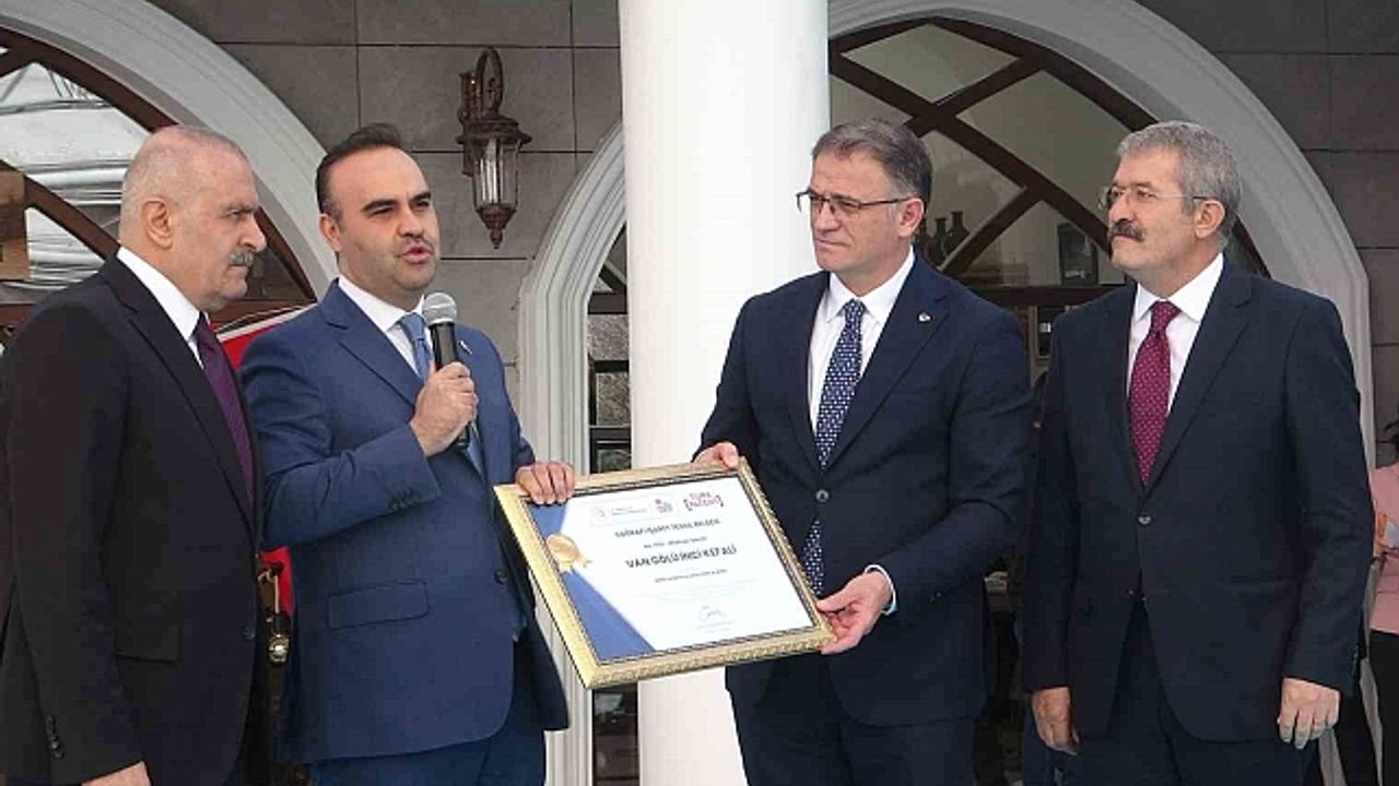 Çeşitli temaslar için Van''a gelen Sanayi ve Teknoloji Bakanı Mehmet Fatih Kacır, Bedesten Çarşısı''nın açılışına katıldı. Bakan Kacır burada inci kefali için hazırlanan coğrafi işaret tescil belgesini Van Valisi ve Büyükşehir Belediye Başkan Vekili Ozan Balcı ile Van Ticaret ve Sanayi Odası (Van TSO) Yönetim Kurulu Başkanı Necdet Takva''ya takdim etti. Van''ın simgelerinden inci kefali, tescil belgesiyle koruma altına alındı.