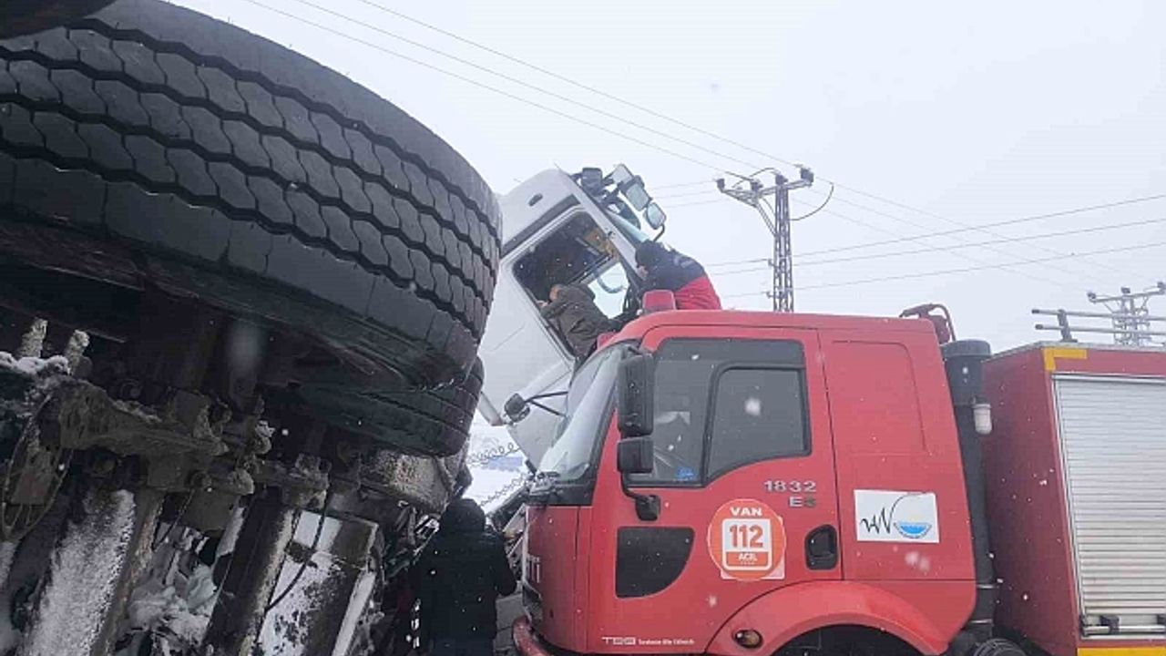 Edinilen bilgiye göre, kaza, sabah saatlerinde ilçeye bağlı Tekevler Mahallesi civarında meydana geldi. Sürücüsünün ismi öğrenilemeyen Mercedes Axor marka tır, yolun karlı olmasından dolayı kaza yaptı. Haber verilmesi üzerine bölgeye ambulans, jandarma ve Erciş İtfaiye Grup Amirliği ekipleri sevk edildi. Yaralı sürücü sıkıştığı yerden sağlık ekiplerine teslim edildi. Olay yerinde yapılan ilk müdahalenin ardından yaralı hastaneye kaldırılırken, kazayla ilgili tahkikat başlatıldı.