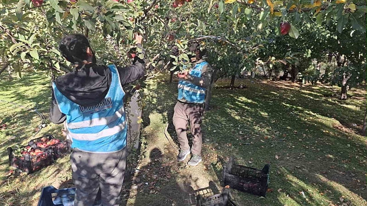 Bölgeye giden vakıf üyeleri, bahçedeki elmaları hasat ederek sepetlere doldurdu. Mahsulün gelirinin Gazze''deki ihtiyaç sahiplerine ulaştırılması amaçlanıyor.