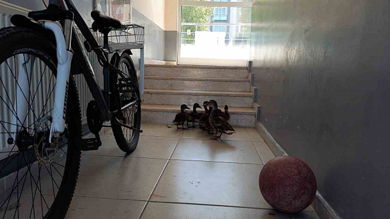 Stadyumun koridorlarında dolaşan yaban ördeği ve 6 yavrusu DKMP ekiplerince bulunduğu yerden alınarak tekrar doğal yaşam ortamlarına bırakıldı.