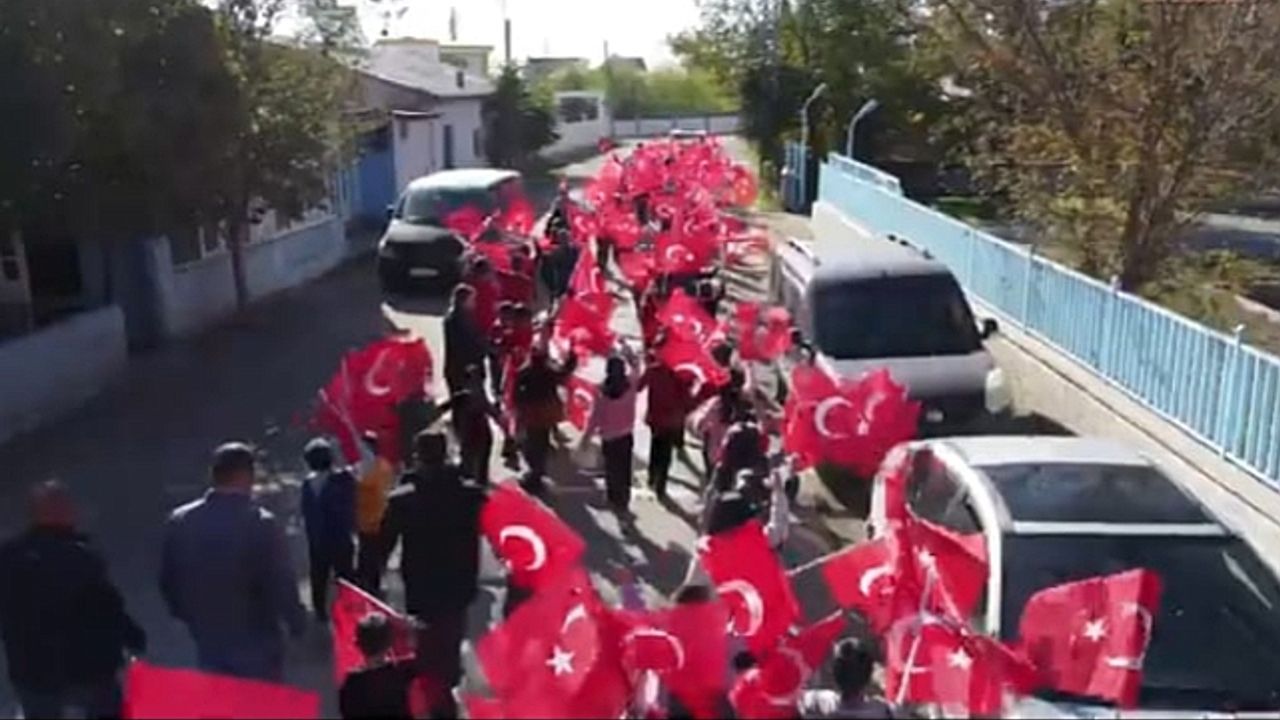 Iğdır"ın Yaycı Köyü"nde, 29 Ekim Cumhuriyet Bayramı dolayısıyla bayraklı bir yürüyüş düzenlendi.