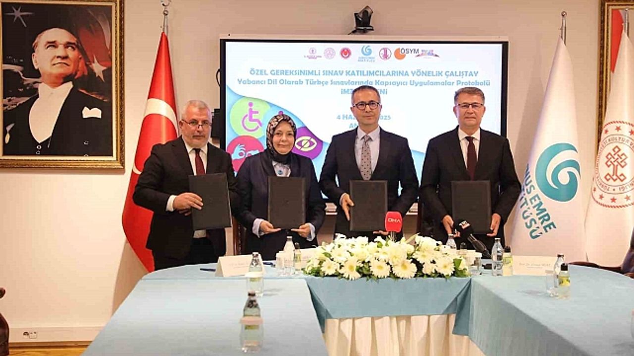 Yunus Emre Enstitüsü, Millî Eğitim Bakanlığı, Ölçme, Seçme ve Yerleştirme Merkezi Başkanlığı ile Türk Dil Kurumu, özel gereksinimli bireylerin "yabancı dil olarak Türkçe" sınavlarında eşit fırsatlara sahip olmalarını sağlamak ve "kapsayıcı, erişilebilir, sürdürülebilir" sınav uygulamaları geliştirmek için iş birliği protokolü imzaladı.