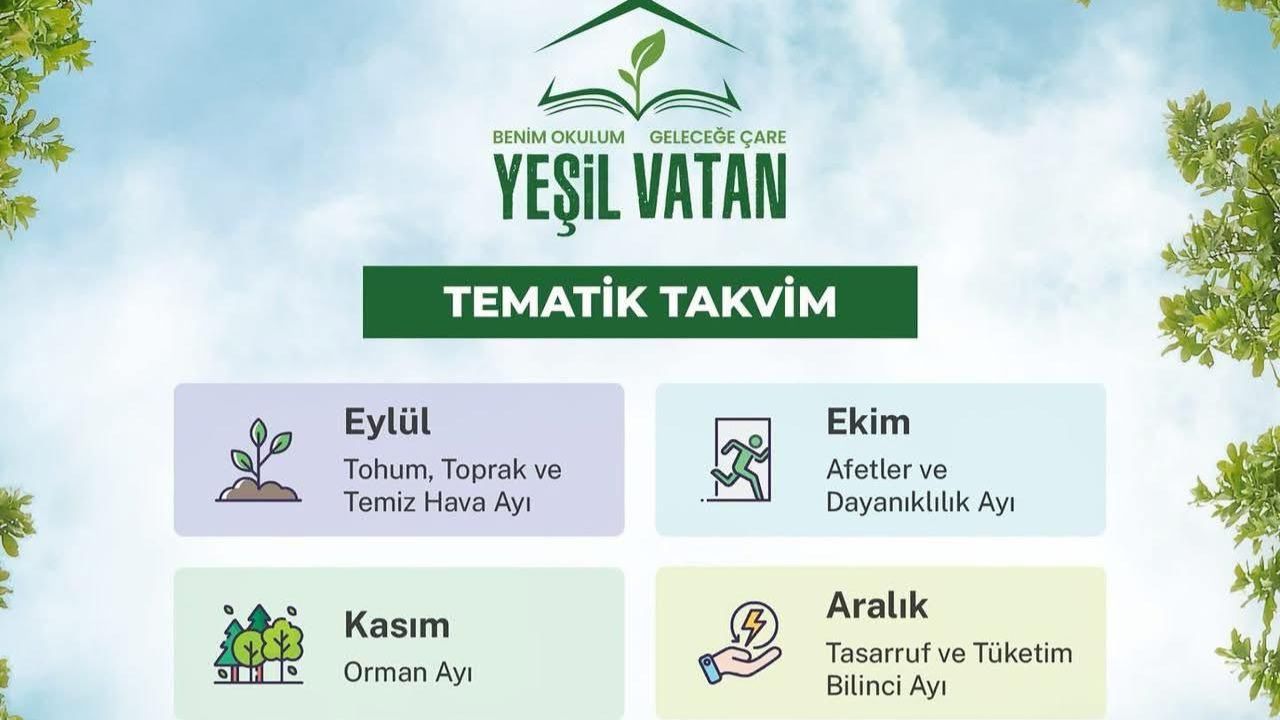 Proje kapsamında hazırlanan “Yeşil Vatan Tematik Takvimi”, yıl boyunca ay ay uygulanacak temaları içeriyor. Buna göre;