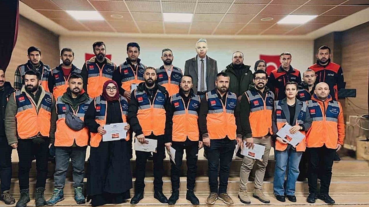 Hakkari İl Afet ve Acil Durum Müdürlüğü tarafından Yüksekova''da verilen eğitimleri başarıyla tamamlayan 17 gönüllü için kimlik kartı teslim töreni düzenlendi.