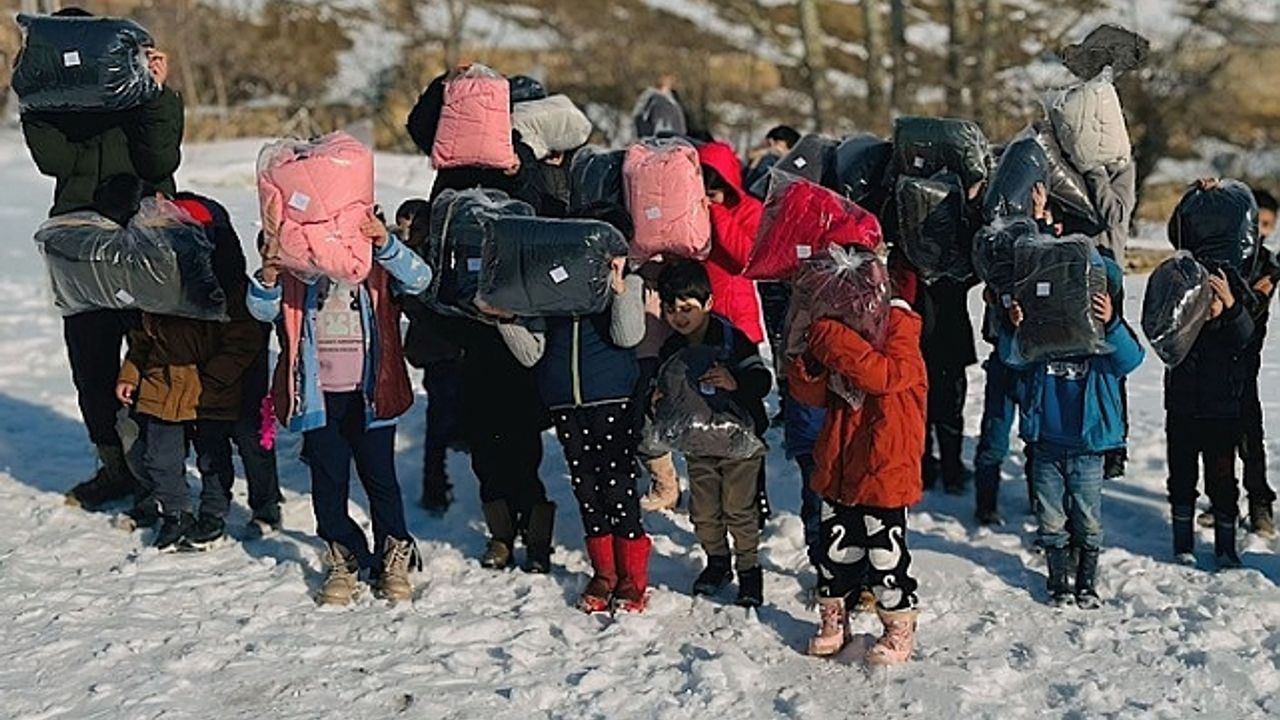 Hakkari''nin Yüksekova ilçesine bağlı Çukurca köyündeki çocuklara mont ve ayakkabı yardımı yapıldı.