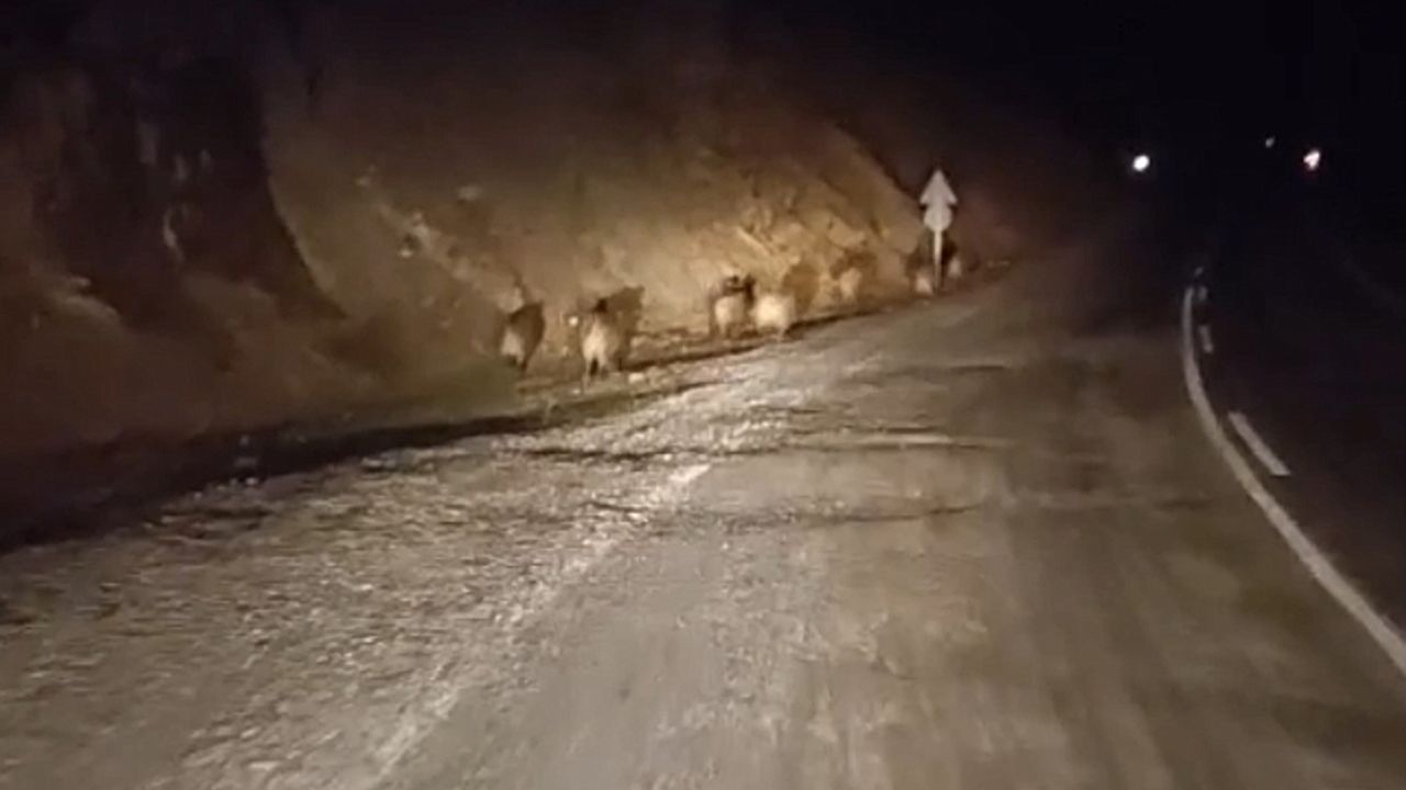 Hakkari''nin Yüksekova ilçesinde seyir halinde olan bir araç içerisinden domuz sürüsü görüntülendi. Sürünün bir süre yol kenarında ilerleyip dağlık alana yöneldikten sonra gözden kaybolduğu kaydedildi.